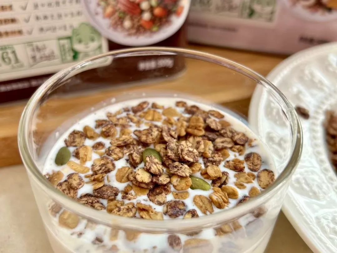 蜻蜓教练的格兰诺拉烘焙燕麦片还特别添加坚果与果干,一次补充优质脂肪和优质碳水!