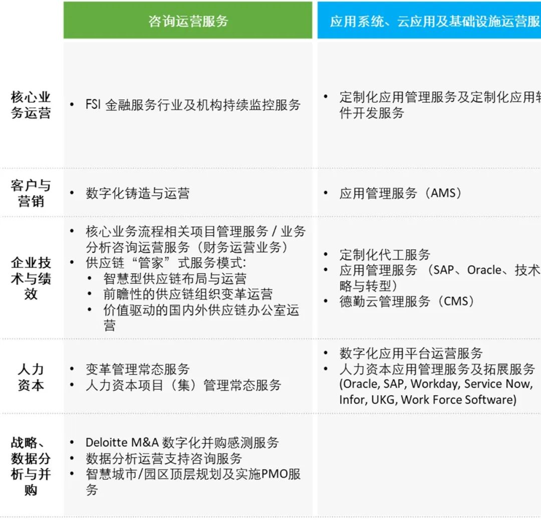 图1:德勤中国管理咨询全链运营业务各服务类型