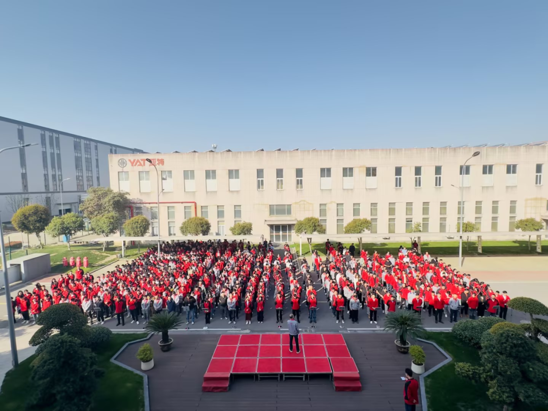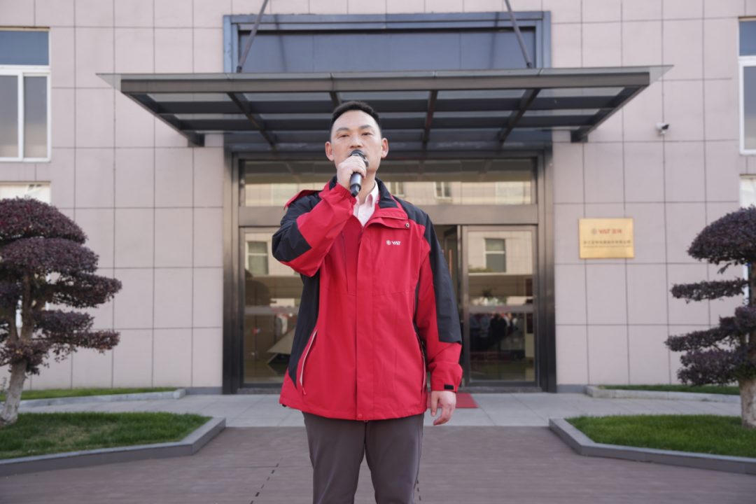 在主持人带领下,全体同仁高举右手,齐声诵读亚特企业文化,铿锵有力的誓言回荡在会场,为早会拉开序幕,更坚定了每一位亚特人迎战变局的信念。