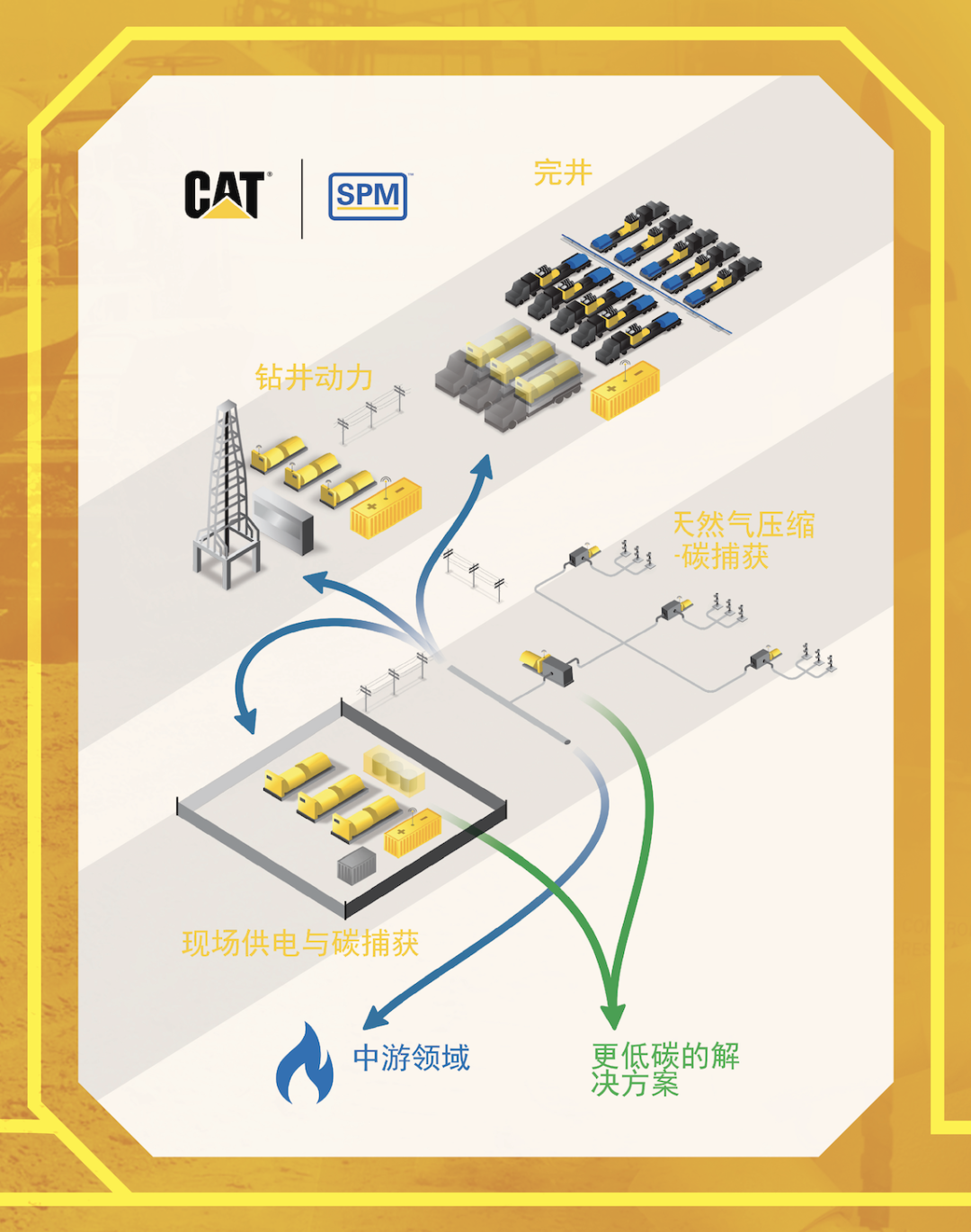 卡特彼勒携油气行业一站式动力解决方案及Cat® G3520J燃气发动机亮相本次展会。
