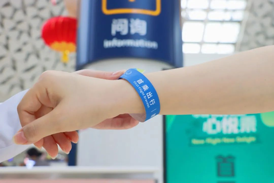 “我的航班快起飞了,可以帮帮我吗?”“您别着急,戴上接力式服务手环,跟我来。”2024年,美兰机场打通旅客服务链条,创新推出“接力式”服务,提升机场与陆侧高铁、公共交通的协同联动效率,实现航站楼内值机、问讯柜台和安检通道资源提前开放,2024年累计保障旅客11.88万人次,大幅提高空铁联运旅客的保障效率。