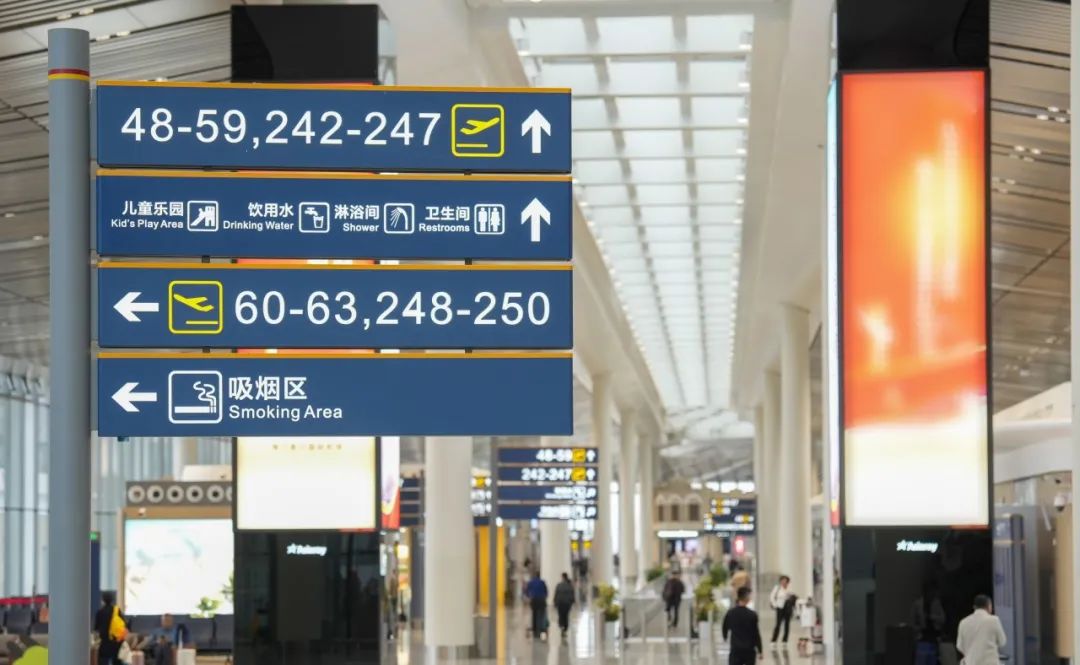 服务设施日益完善,标识标牌更新也势在必行。如今美兰机场的标识标牌已经新增了服务设施指向标识,同时考虑到商业经营业态分为有税及免税两部分,为让旅客快速找到心仪的品牌,美兰机场精心打造综合化商业导视标识体系,在T2值机岛、商业街出入口、登机口增加醒目的发光商业标识及商业分布图,并引入两台具备搜索查询、动态路径规划、模拟行走路线指示等功能的智慧商业导航屏,让购物体验直线上升。