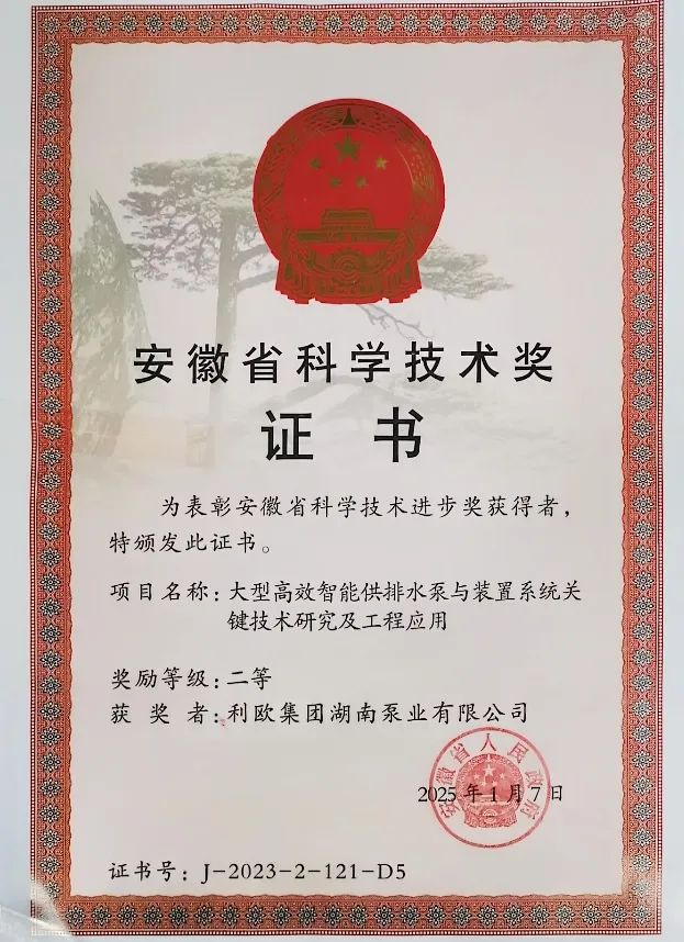 近日,安徽省人民政府正式公布年度科学技术进步奖获奖名单,利欧泵业凭借“大型高效智能供排水泵与装置系统关键技术研究及工程应用”项目脱颖而出,荣获“安徽省科学技术奖”二等奖!
