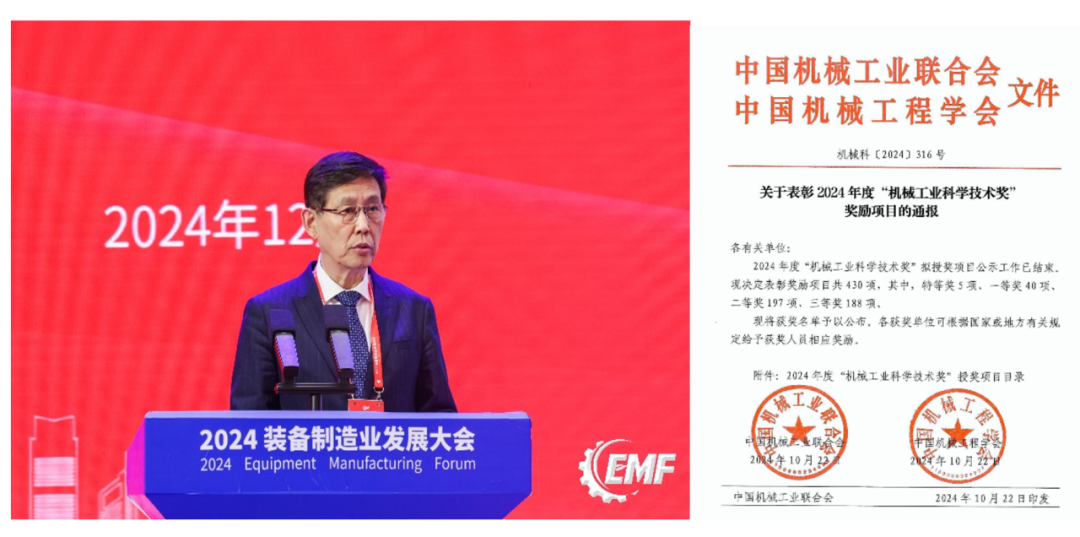 中国机械工业联合会、中国机械工程学会发布《关于表彰2024年度“机械工业科学技术奖”奖励项目的通报》,公布2024年度“机械工业科学技术奖”授奖项目。决定表彰奖励项目共430项,其中,特等奖5项、一等奖40项、二等奖197项、三等奖188项。