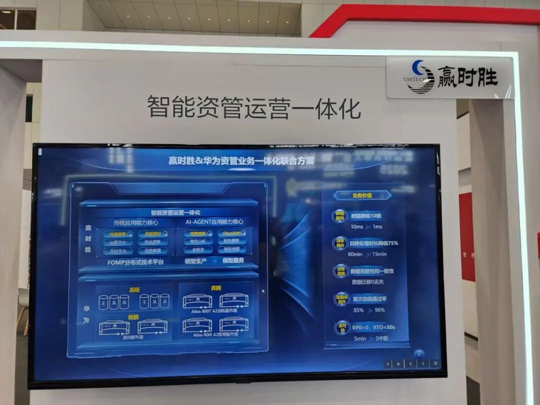 在本次大会的伙伴方案集成展区,赢时胜携手华为,隆重推出了智能资管运营一体化的联合方案。该整体解决方案创新构建"传统业务+ AI 应用"双轮驱动架构,一方面传统业务层依托赢时胜自主研发的FOMP分布式技术平台,实现估值核算、资金管理等六大核心系统的应用级分布式部署,突破传统集中式架构性能瓶颈;AI应用层则基于赢时胜Agent技术路线打造的全栈式金融AI引擎,结合华为认证的赢时胜AI一体机与DeepSeek主力模型,在智能运营、风险预警、报告审核等场景实现了工程化落地。