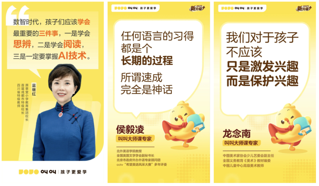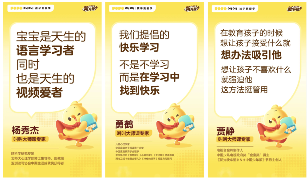 能收获如此多大咖的信赖,源于叫叫18年来对儿童内容的深耕,我们始终围绕“孩子更爱学”这一点,坚持输出有趣有效的数字内容,连续3年成为中国少儿数字阅读第一品牌。