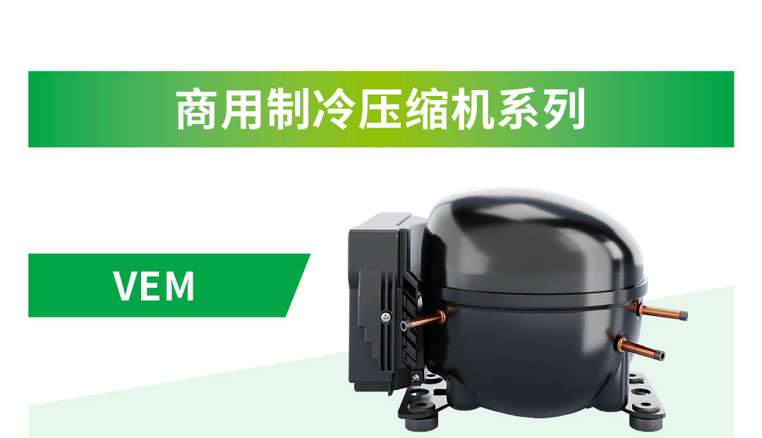 为中小型商用设计的变频压缩机,如商品陈列柜、饮料柜和专业的厨房冰箱。