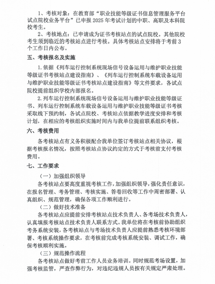 关于组织“1+X”列车运行控制系统设备运用与维护职业技能等级证书2025年上半年考核工作的通知