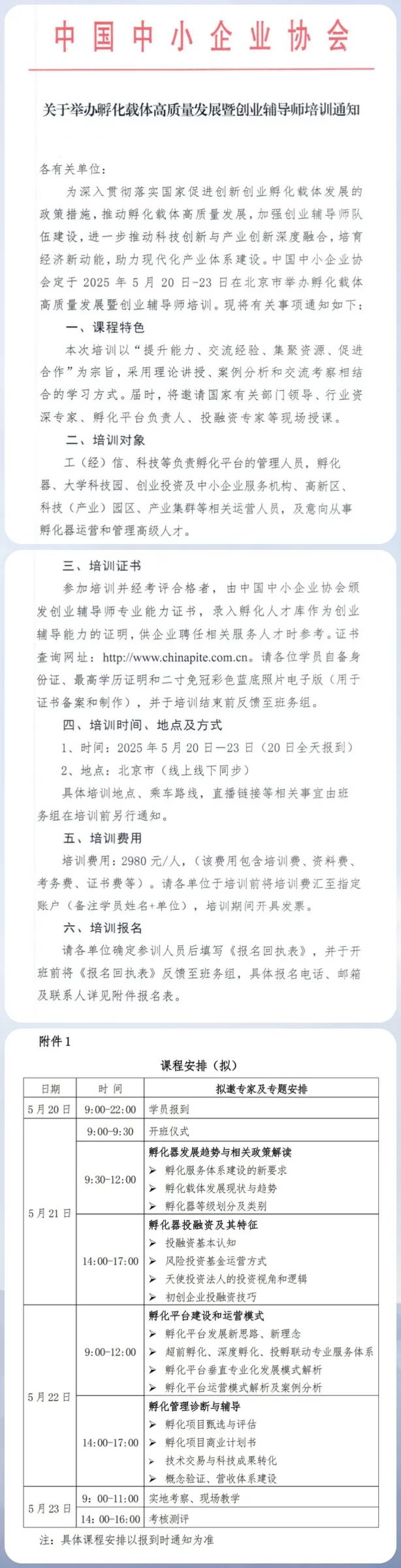 关于举办孵化载体高质量发展暨创业辅导师培训通知