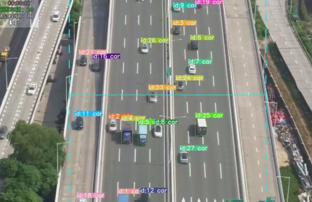 场景5:东莞高速无人机通行监测,结合人工智能识别高速运行相关拥堵、停车、交通事故、逆行、抛洒杂物等事件,保障高速的顺畅通行。