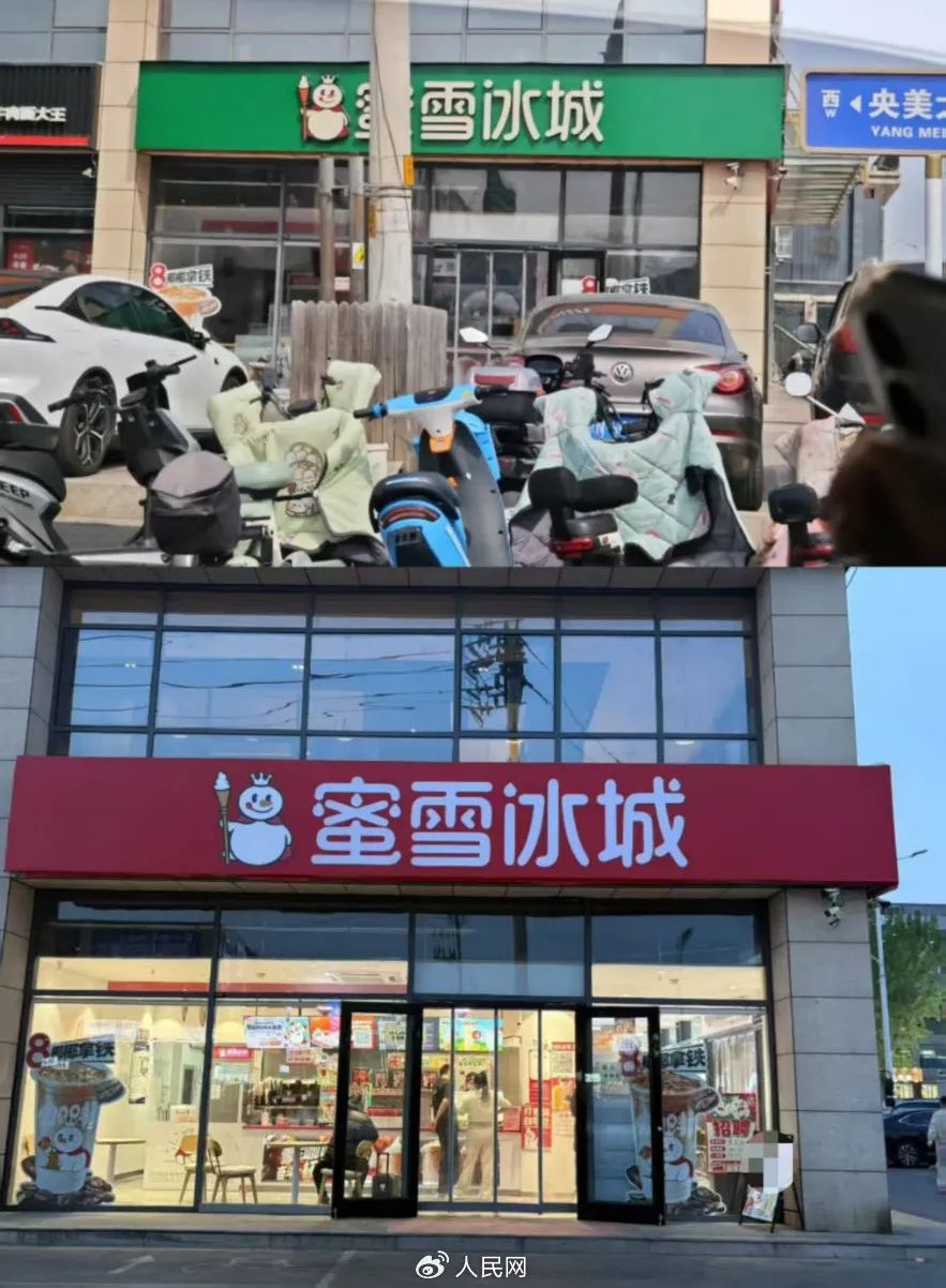 起因:有网友发帖称河北省三河市多家商铺更换招牌颜色,红色等底色被“禁用”,一张招牌被刷成绿色的蜜雪冰城照片广泛传播并引发热议。