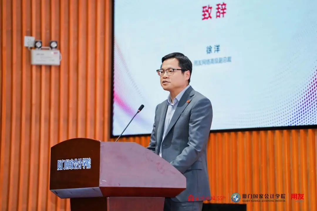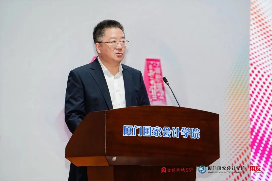大会伊始,厦门国家会计学院党委副书记、院长、教授丁友刚在致辞中表示,当前人工智能已掀起重塑经济社会的浪潮,财务领域正发生深刻变革,智能算法解放财务人员,打破业财壁垒,构建业财数据实时交互体系,助力企业精准决策,对企业战略布局意义重大。本次论坛旨在集中展示人工智能赋能企业财务数智化的成果,凝聚行业智慧、促进经验共享,探索未来发展新路径。学院希望共邀行业各界嘉宾共赴这场变革盛会,解锁财务引领企业战略的潜能,让财务成为驱动企业发展的“智慧引擎”。