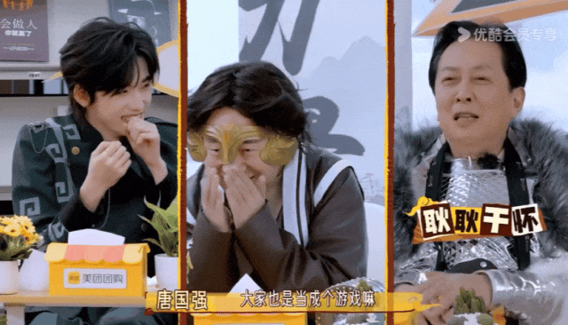 在第一期节目中,唐国强在新一轮的游戏等待间隙
