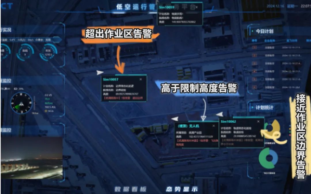 ▶空域管理:负责管控空域和适飞空域的管理,实施电子围栏管理,进行地图与地理信息管理,划设空域航路和飞行高度层,进行空域评估,并发布空域信息。