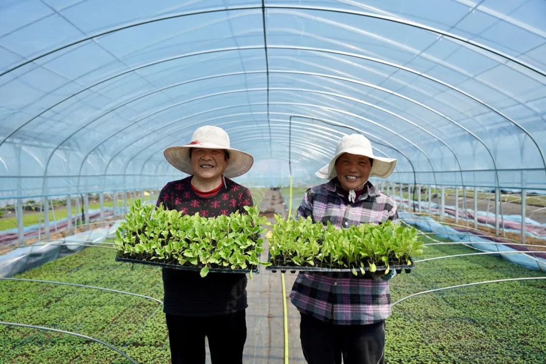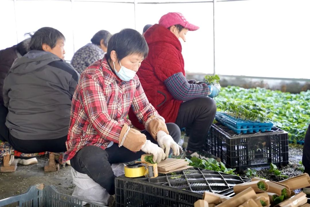“以前我们没活干,只能偶尔打零工,更别说稳定的收入了,”沐阳韩山镇的时阿姨正在给果蔬苗移盘,手法娴熟,“现在这份工作不但内容轻松,时间固定,还包吃饭,一个月能挣两、三千块钱。”像时阿姨这样的中老年妇女,在基地里有上百人。每逢销售旺季,村里人手还不够用,经常要从隔壁村找人帮忙。