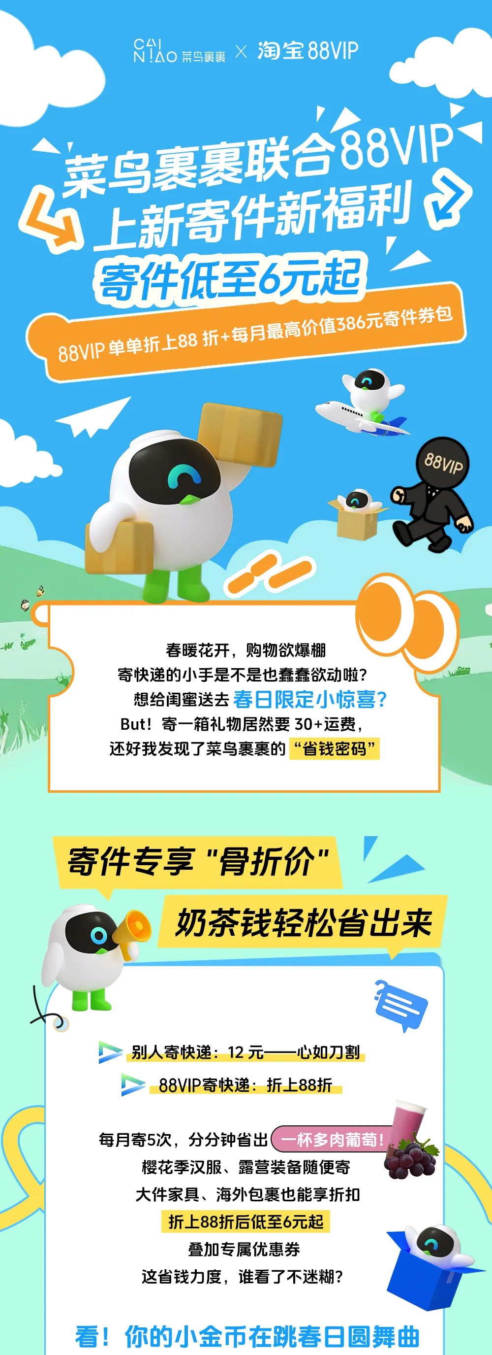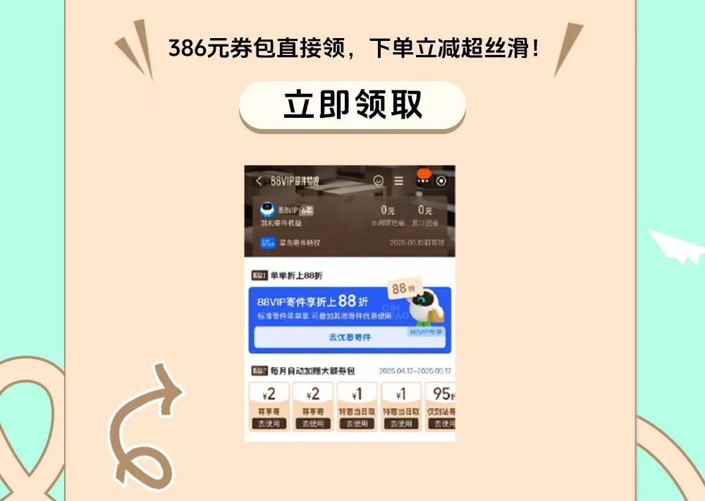 菜鸟裹裹放大招了!88VIP寄件折上88折!