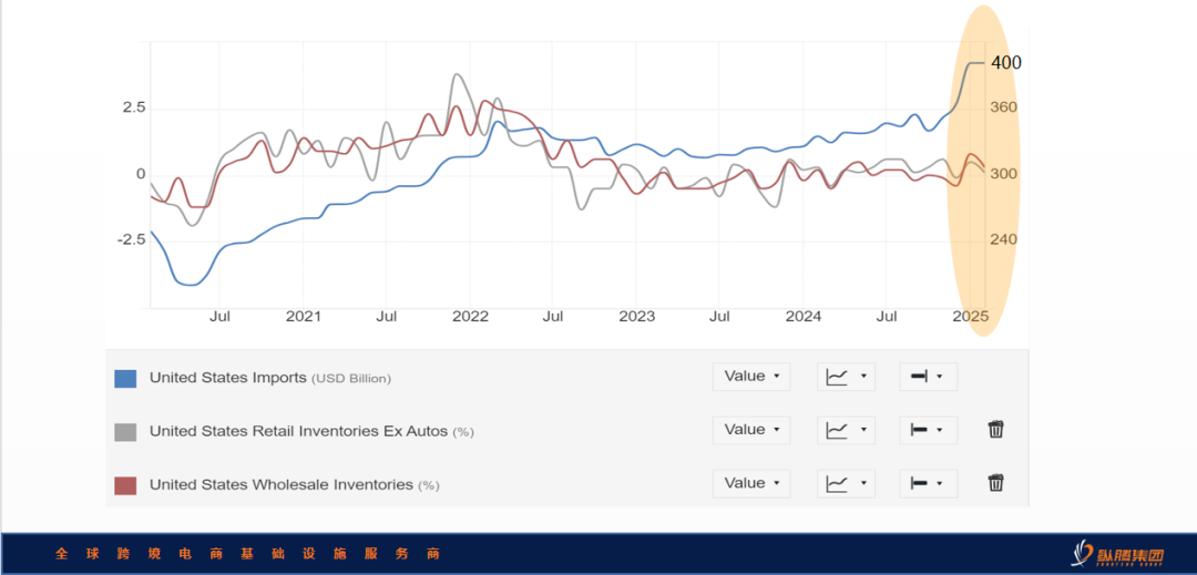 纵腾集团长期跟踪美国零售库存波动状况,形成了一套预测模型: