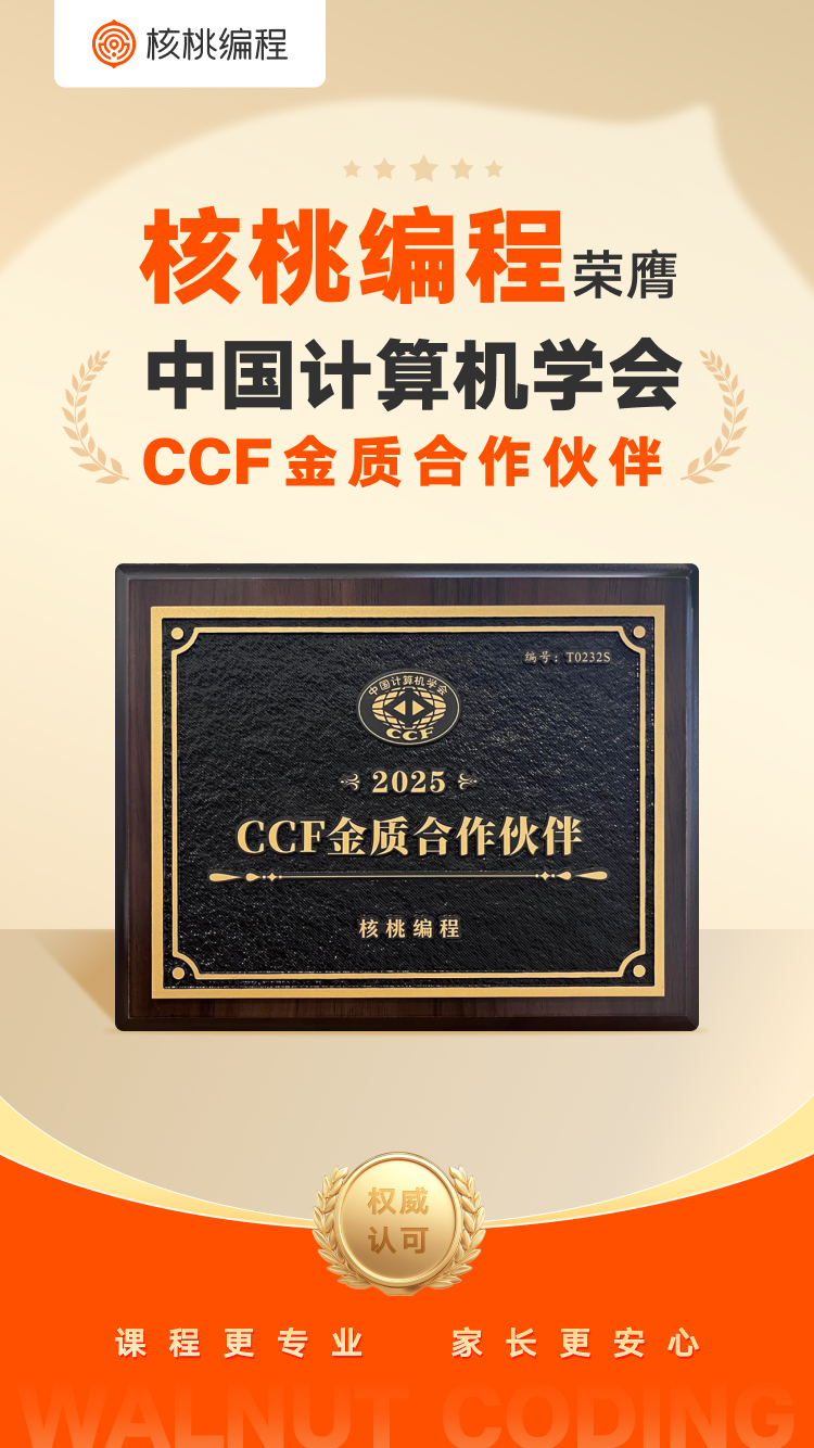 重磅官宣!核桃编程荣膺中国计算机学会 “CCF金质合作伙伴” !
