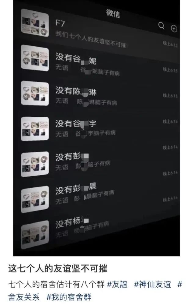 以及经典的,宿舍有N个人,就有N+1个群。网友锐评:简直堪比大型宫斗现场,甄嬛传都不敢这么演。