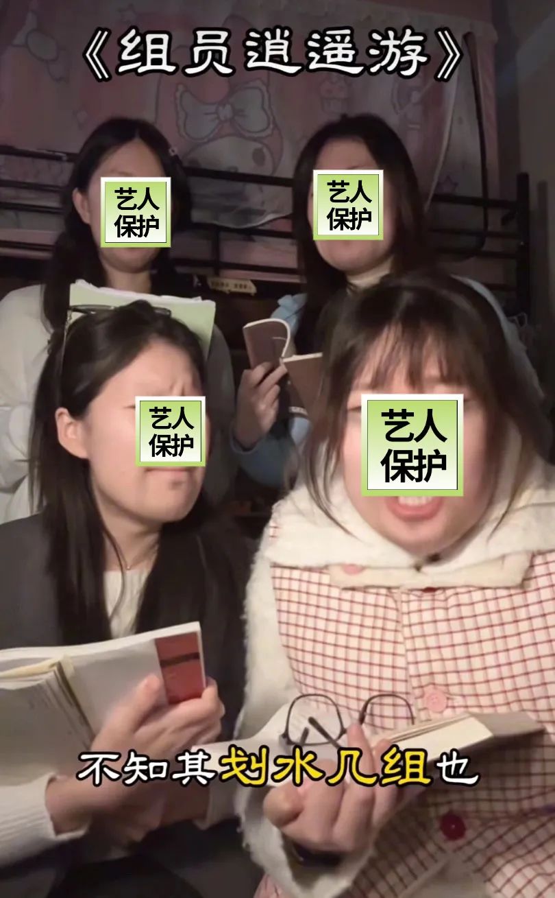 还有集体玩抽象,在抖音上自创《组员逍遥游》吐槽小组作业的:
