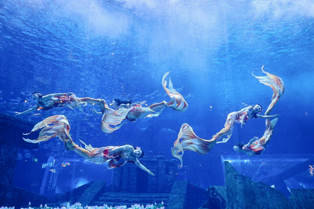 5月1日,昆明融创海世界海洋艺术狂欢节启幕!赛博巨鲸软体无人机震撼空降海底世界,海底版"鱿鱼游戏"高能上线,人鱼传说·荷塘月色-大型水下霓裳舞,带你沉浸于海底世界的梦幻与浪漫。从海洋世界转场至昆明融创施柏阁酒店群,邂逅花海、参与颂钵疗愈、品尝特色美食,尽情享受一场身心放松的度假之旅。