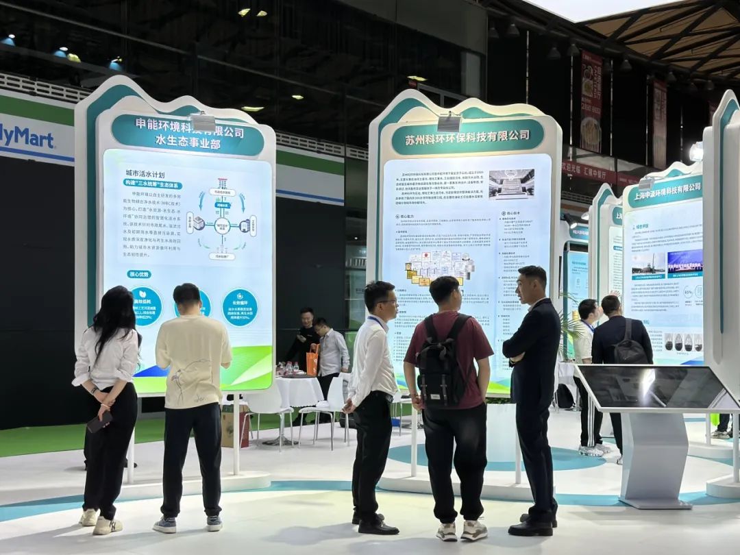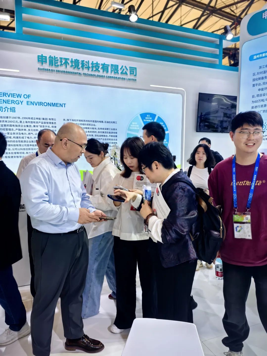 开幕首日,上海市生态环境局科技与国际合作处处长施敏、上海市环境保护产业协会秘书长杨建生莅临展台参观指导。展台现场人头攒动,展商和观众络绎不绝。申能环境来自江浙沪三地的专家团队驻扎现场,详细介绍公司业务亮点和特色服务。