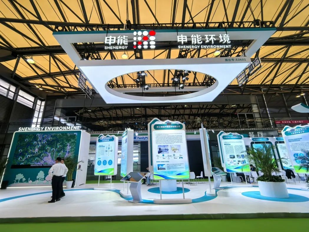 本次环博会,申能环境亮相E3展馆K01展台。展台设计创新融入江南水乡建筑特点,以“城市客厅”为概念打造了一个秉持低碳循环理念的“绿意江南”,以“一步一景一产业”的形式,展现申能在绿色能源综合利用、生物质资源循环利用、工业废水处理等领域的最新项目、技术和服务。