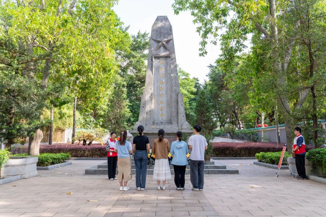 活动当天,阳光明媚,全体党员神情肃穆地来到吴勤烈士陵园。陵园内外栽木棉、松柏、桂花、米兰、天冬等花木,绿树成荫,四季常青。陵园庄严而肃静,松柏苍翠,烈士纪念碑巍峨耸立。在庄严肃穆的烈士纪念碑前,全体人员列队默哀,向革命先驱吴勤烈士三鞠躬致敬,表达对革命先烈的深切哀思与崇高敬意。