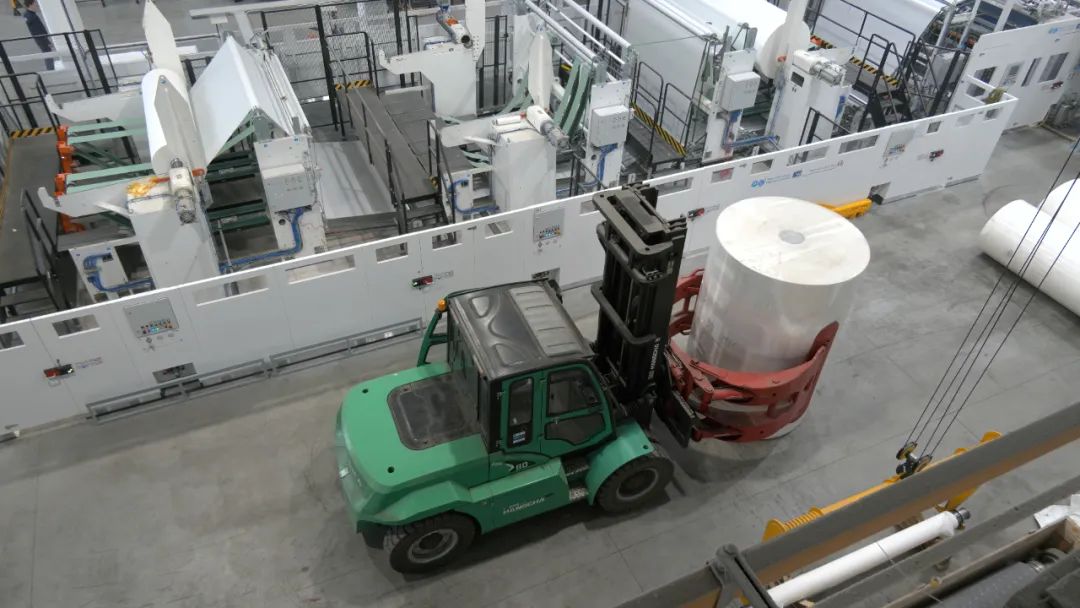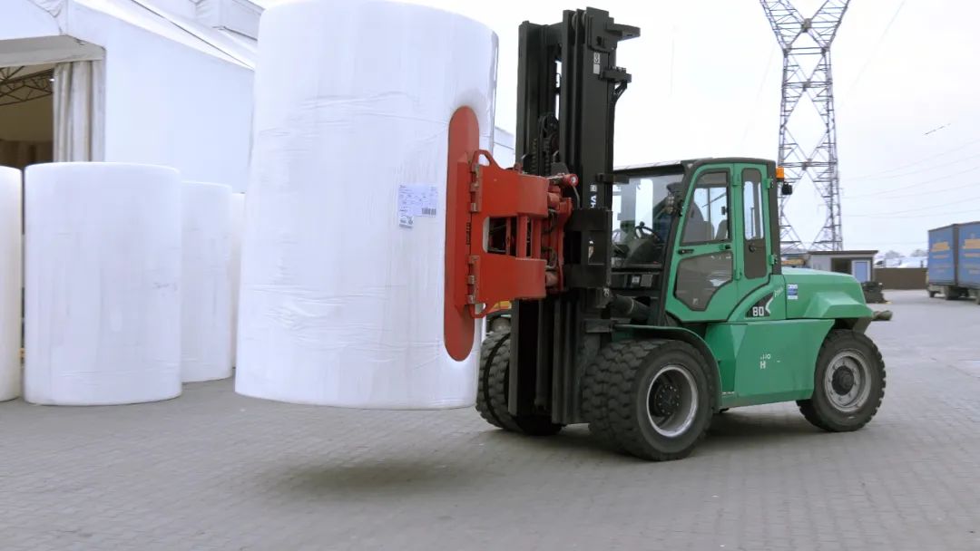 纸卷超重:单卷纸材重量可达1-3.5吨,对叉车承载稳定性要求极高; 空间限制:仓库与生产线通道狭窄,设备需灵活转向; 环保刚需:造纸车间环境敏感,零排放、低噪音成硬指标。