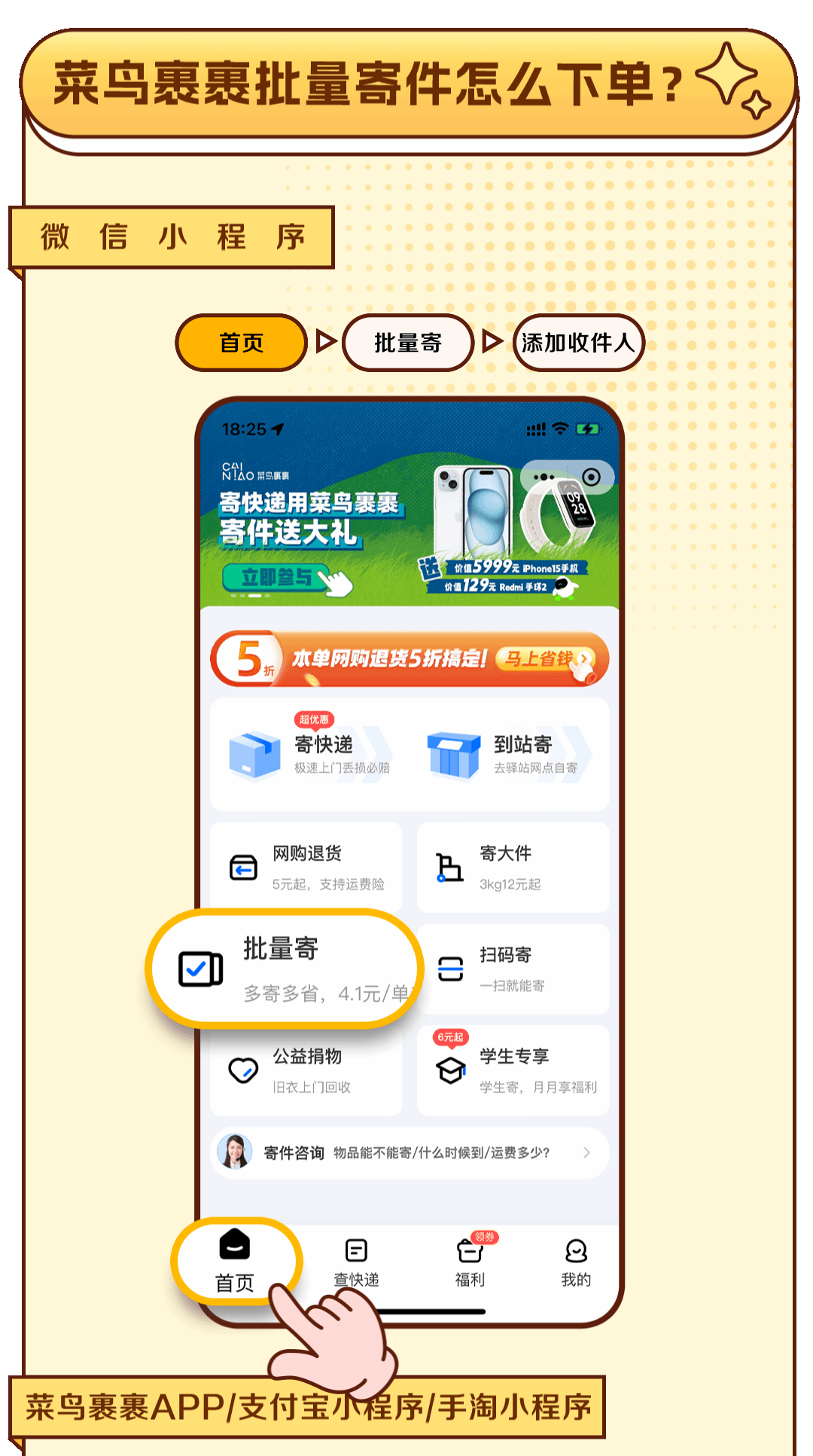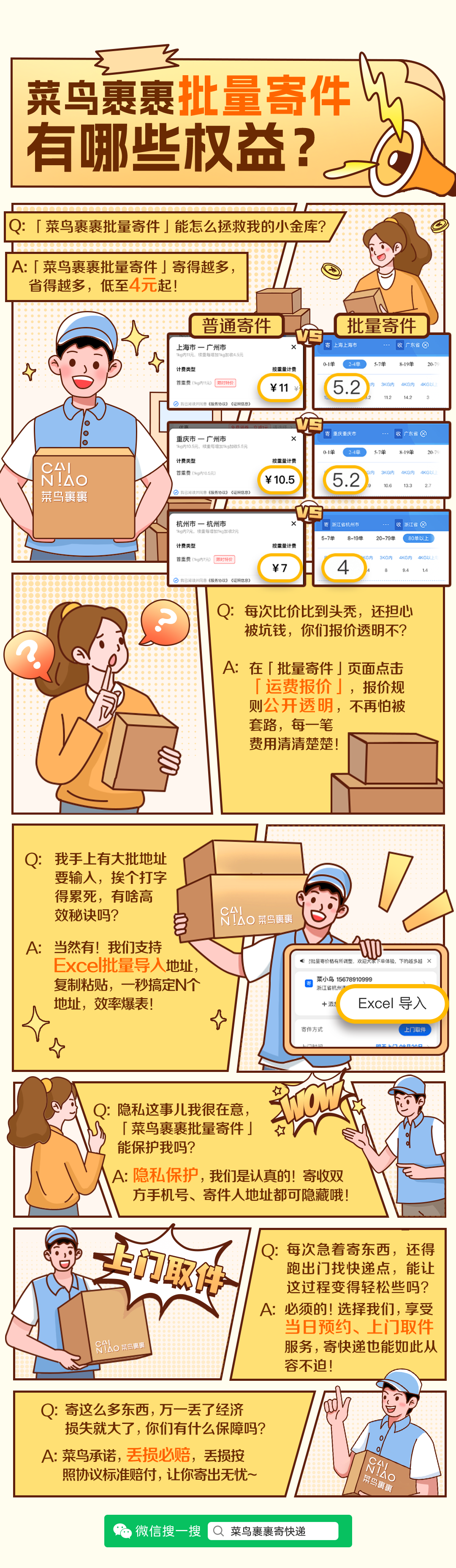 【批量寄超省】菜鸟裹裹批量寄件4元起,寄越多省越多!