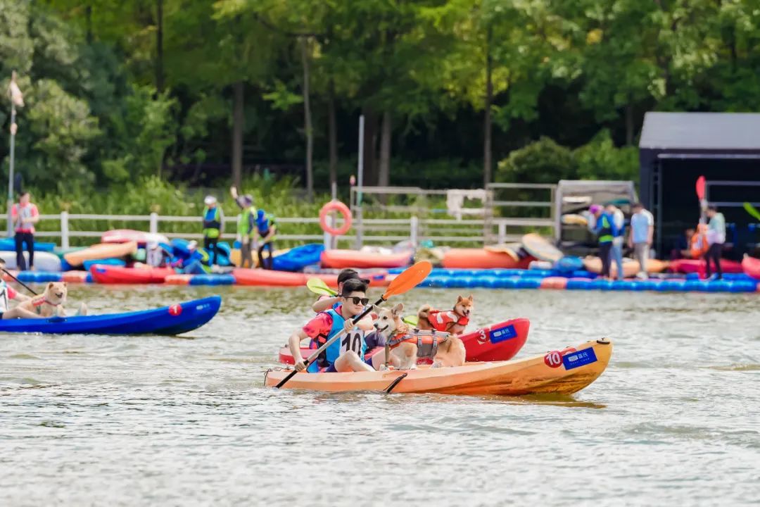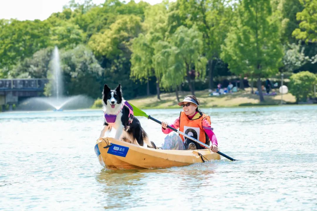 4 月 26 日,嘉定银翔湖公园化身人宠共欢的水上乐园,2025 年上海城市业余联赛上海市皮划艇系列赛暨第七届 “蓝氏杯” 携宠皮划艇邀请赛在此激情开赛。