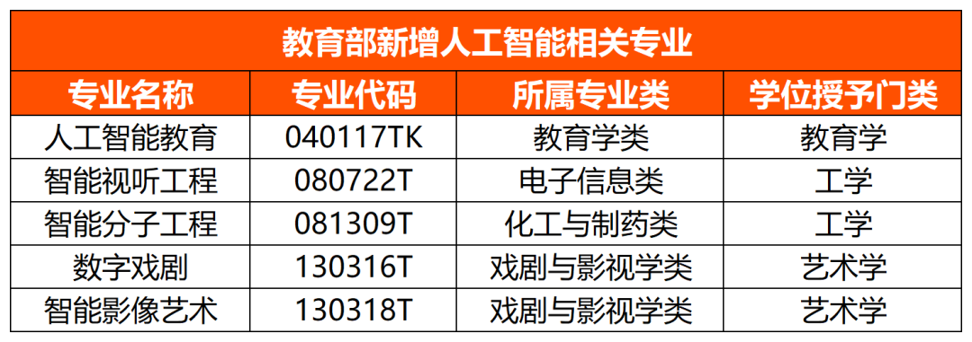 其中,人工智能相关专业再次成为本科新增重点专业,覆盖教育、艺术、工学等多个领域。