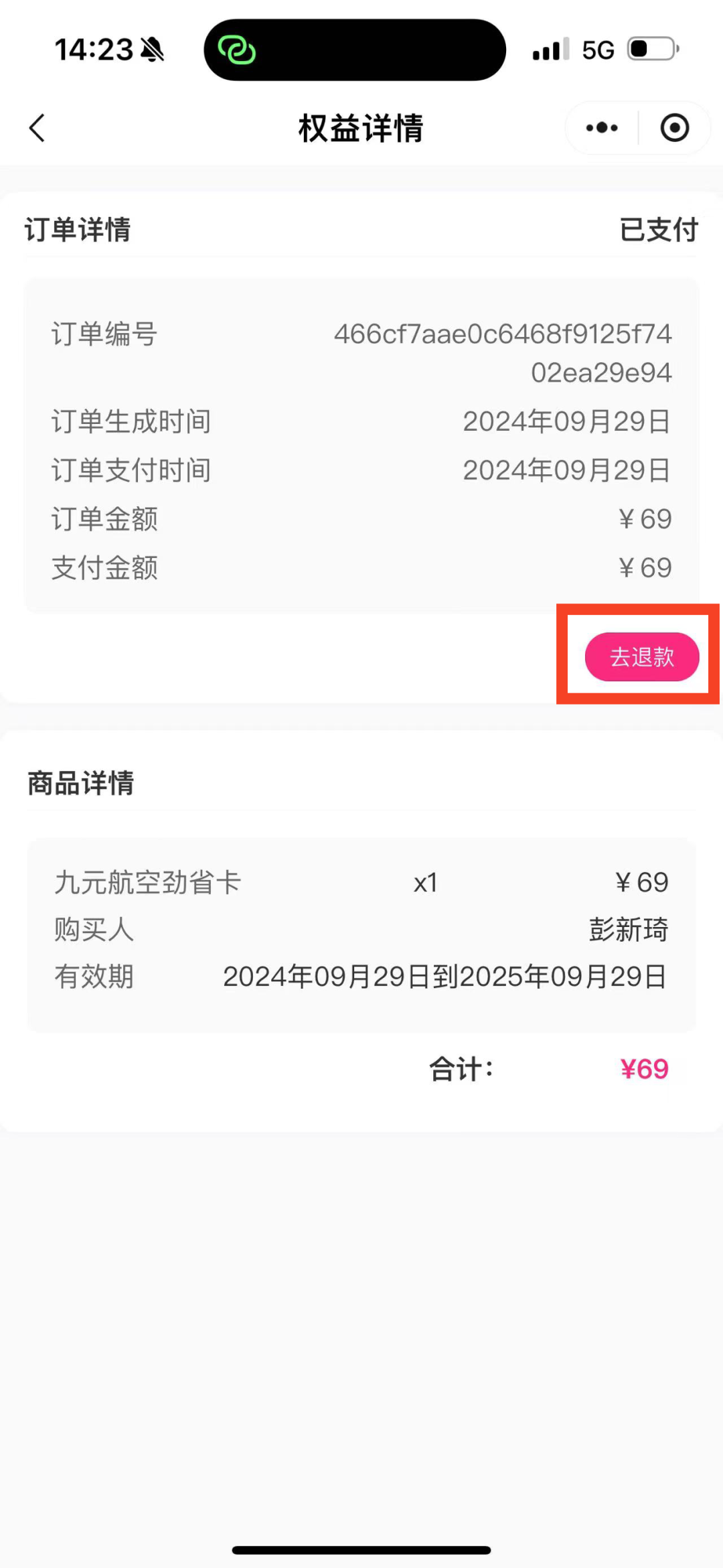 (8)产品退款:购买产品后,若在产品有效期内,即一年内,未使用任何劲省卡权益(或有使用劲省卡记录但非自愿退票),则可全额退款;若在兑换期内曾使用劲省卡权益(包含部分使用、已使用但未成行等),或产品购买超过一年,则无法进行产品退款。如有疑问,请拨打九元航空人工客服400-105-1999。
