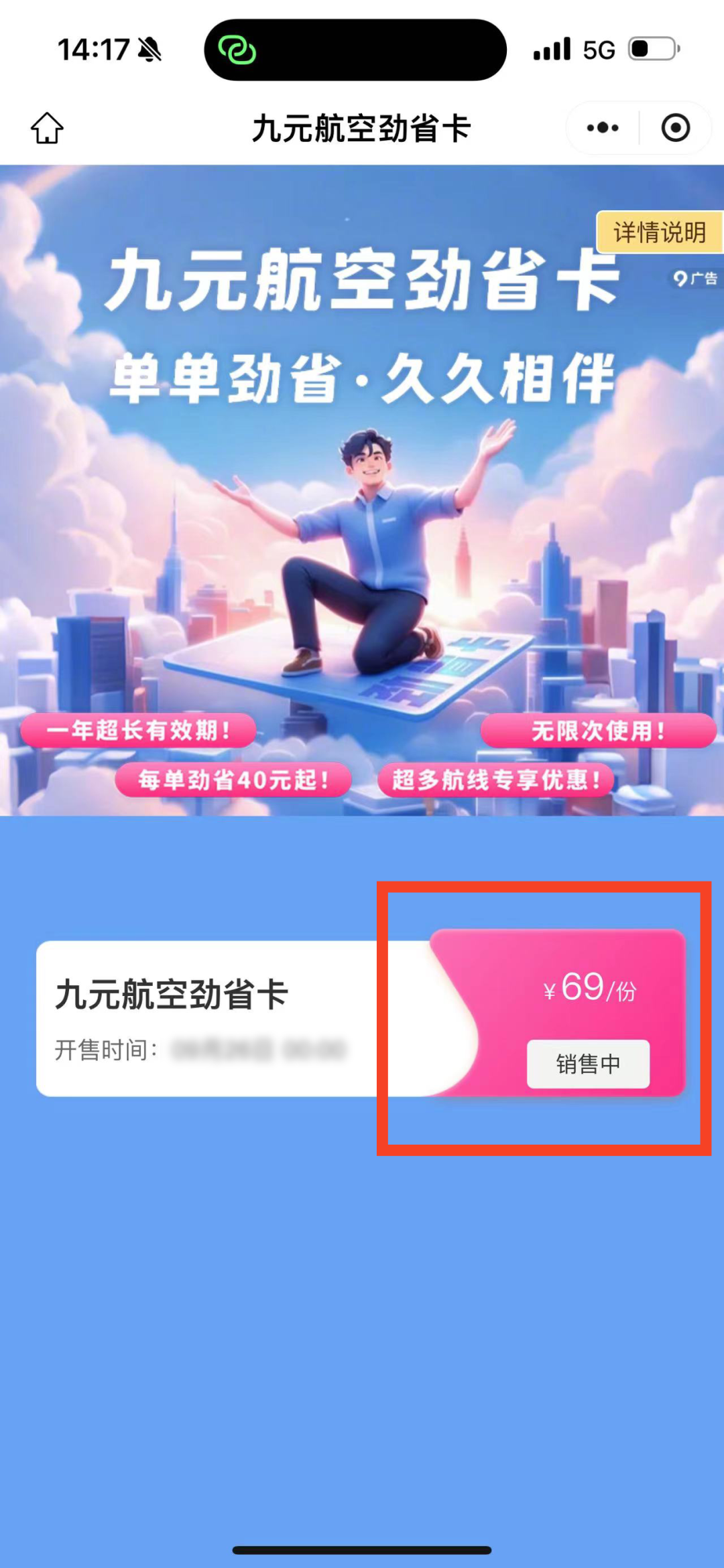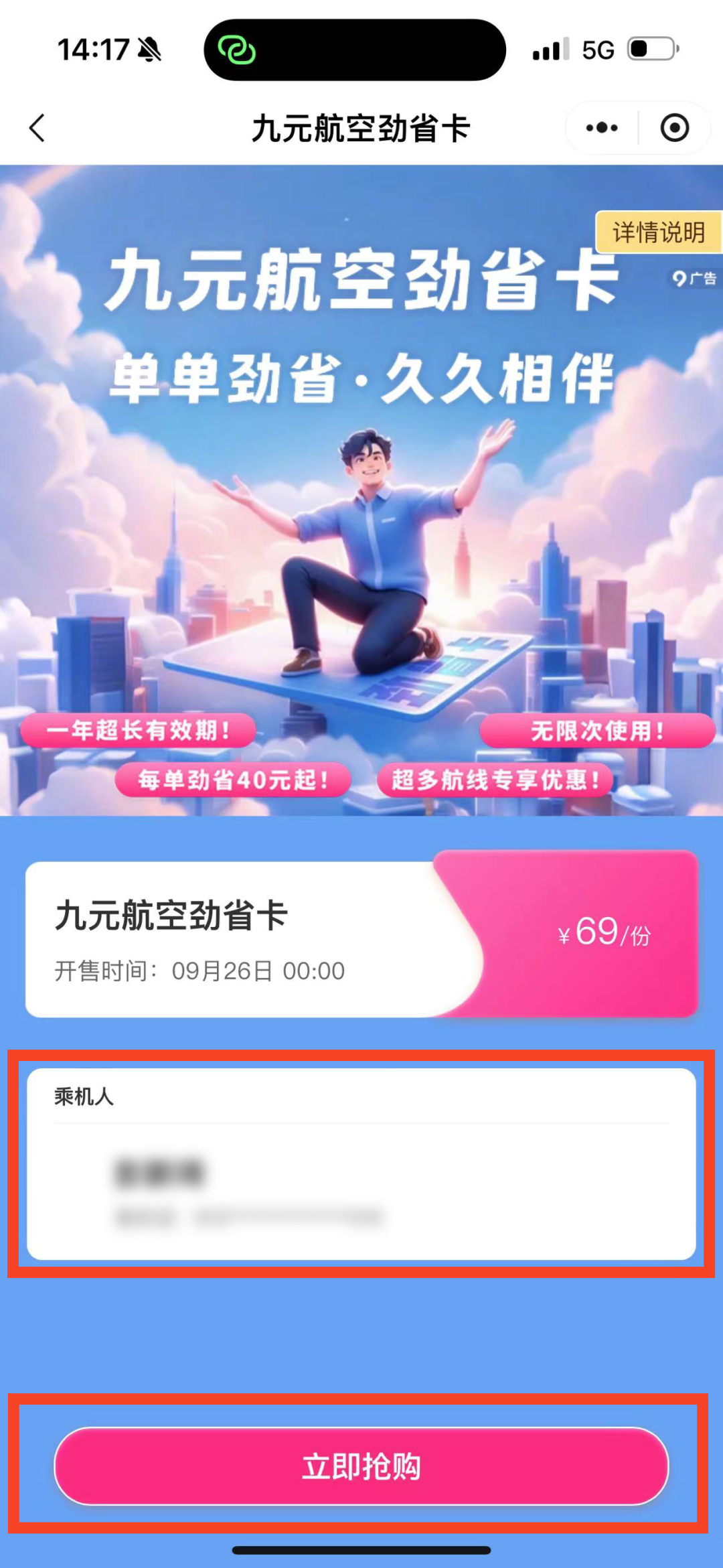 1、产品名称:九元航空劲省卡。