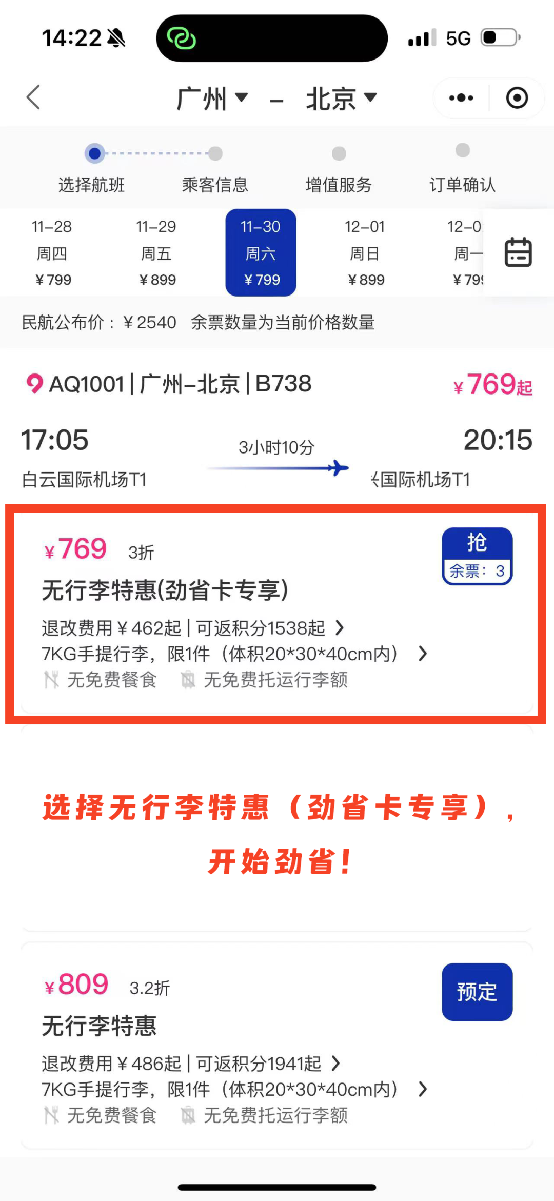 (7)适用舱位:带有“劲省卡专享”标记的无行李特惠舱位
