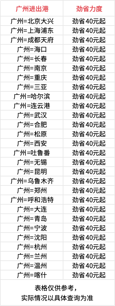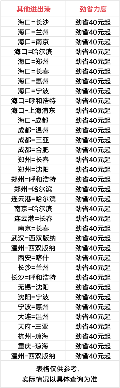 劲省卡优惠航线一览,