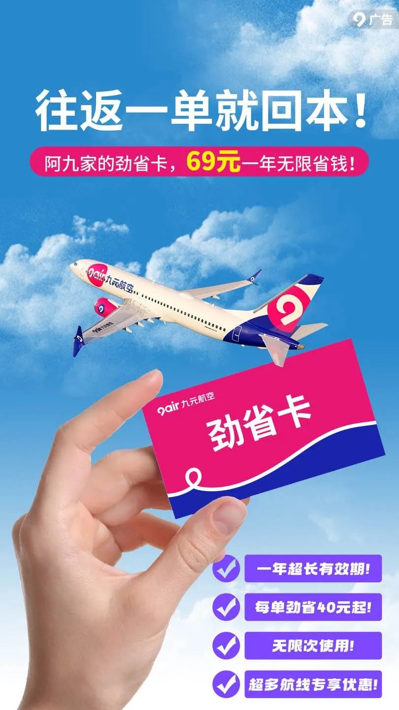 6、适用航线:九元航空实际投放的劲省卡劲省航线,具体投放日期及航线以航班页面显示为准。