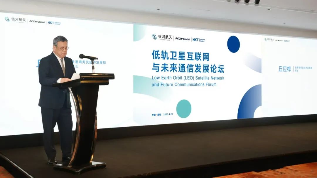 4月29日下午,“低轨卫星互联网与未来通信发展论坛”在香港举行。在本次论坛上,内地私营商业航天领军企业银河航天与香港电讯旗下国际电讯服务供应商PCCW Global签署重要战略合作框架协议,在全球低轨卫星互联网领域展开更深层次的合作。PCCW Global将发挥自身广泛网络覆盖以及基础设施的优势,结合银河航天的尖端科技,进一步将低轨卫星服务拓展至香港以至“一带一路”国家。上述重要战略合作框架协议,在香港特别行政区政府商务及经济发展局局长丘应桦见证下签署。前排左一银河航天联合创始人副总裁刘畅,前排右一PCCW Global 行政总裁徐家辉;二排左一银河航天创始人董事长兼CEO徐鸣,二排左二(中间)香港特别行政区商务及经济发展局局长丘应桦,二排右一香港电讯执行董事、集团董事总经理许汉卿丘应桦局长在致辞中表示,国家2025年的《政府工作报告》提出了因地制宜发展新质生产力,开展新技术新产品新场景大规模应用示范行动,培育壮大和深入推进包括商业航天等新产业。香港作为地区通信枢纽,电讯服务发展蓬勃,特区政府一直努力推动先进通信科技发展。其中,低轨卫星是全球卫星发展的新趋势,不但更具成本效益,也适合广泛应用于不同领域,包括交通物流、智慧旅游等等。祝愿银河航天与 PCCW Global 在卫星业务更上一层楼,令国家和香港繁星璀璨!