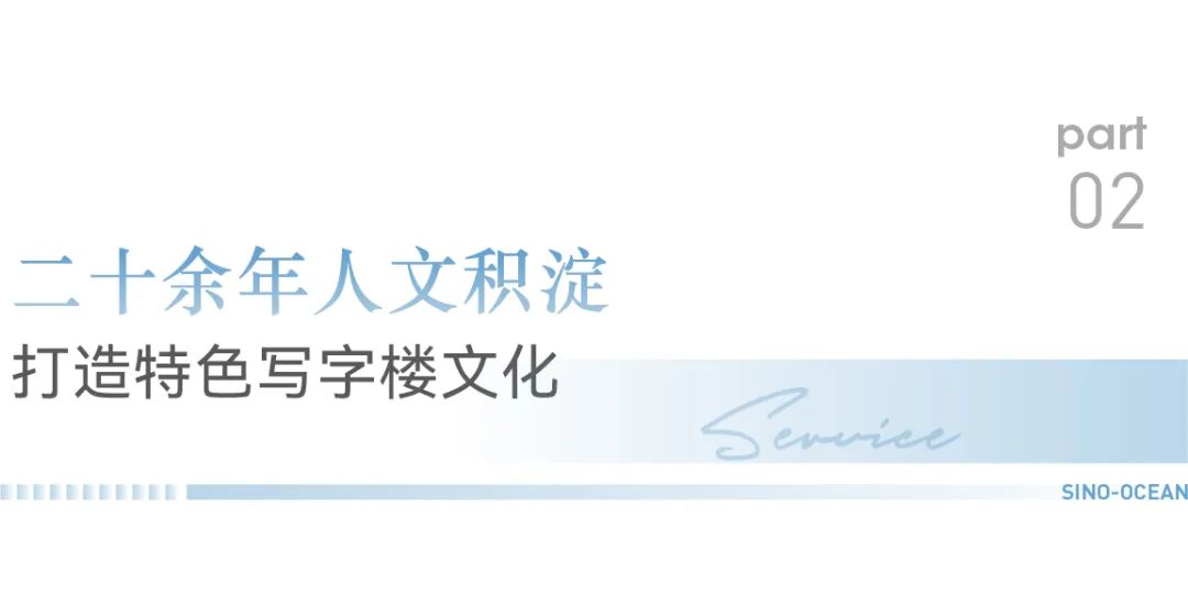 超过二十年的业务积淀。远洋服务将人文管理理念融入日常管理,并形成特色的写字楼文化。