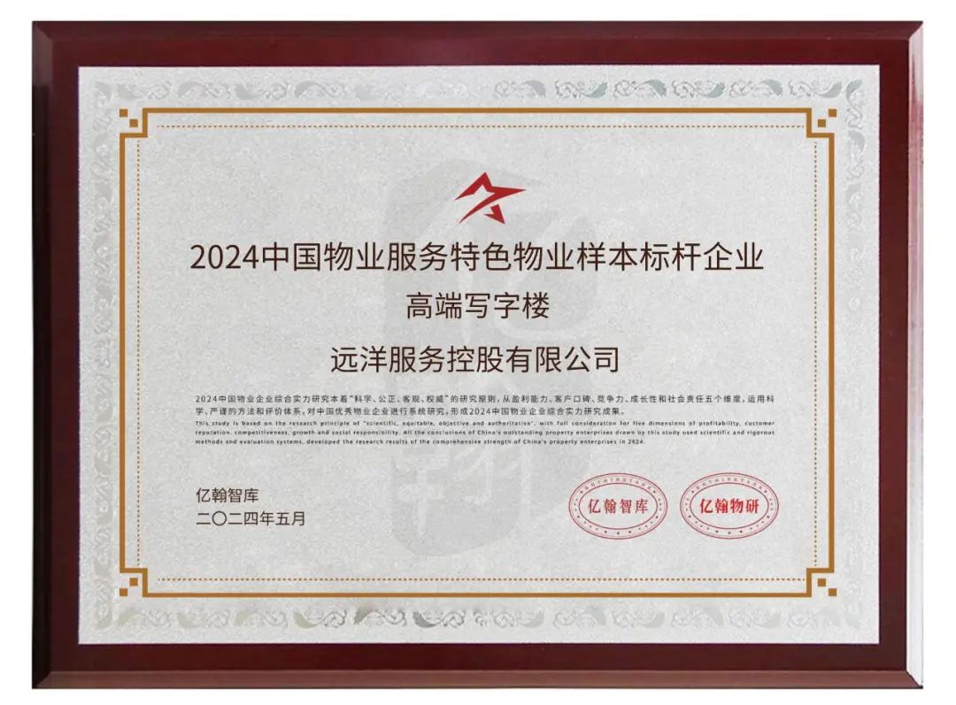 打造高端写字楼服务软实力,远洋服务再获荣誉