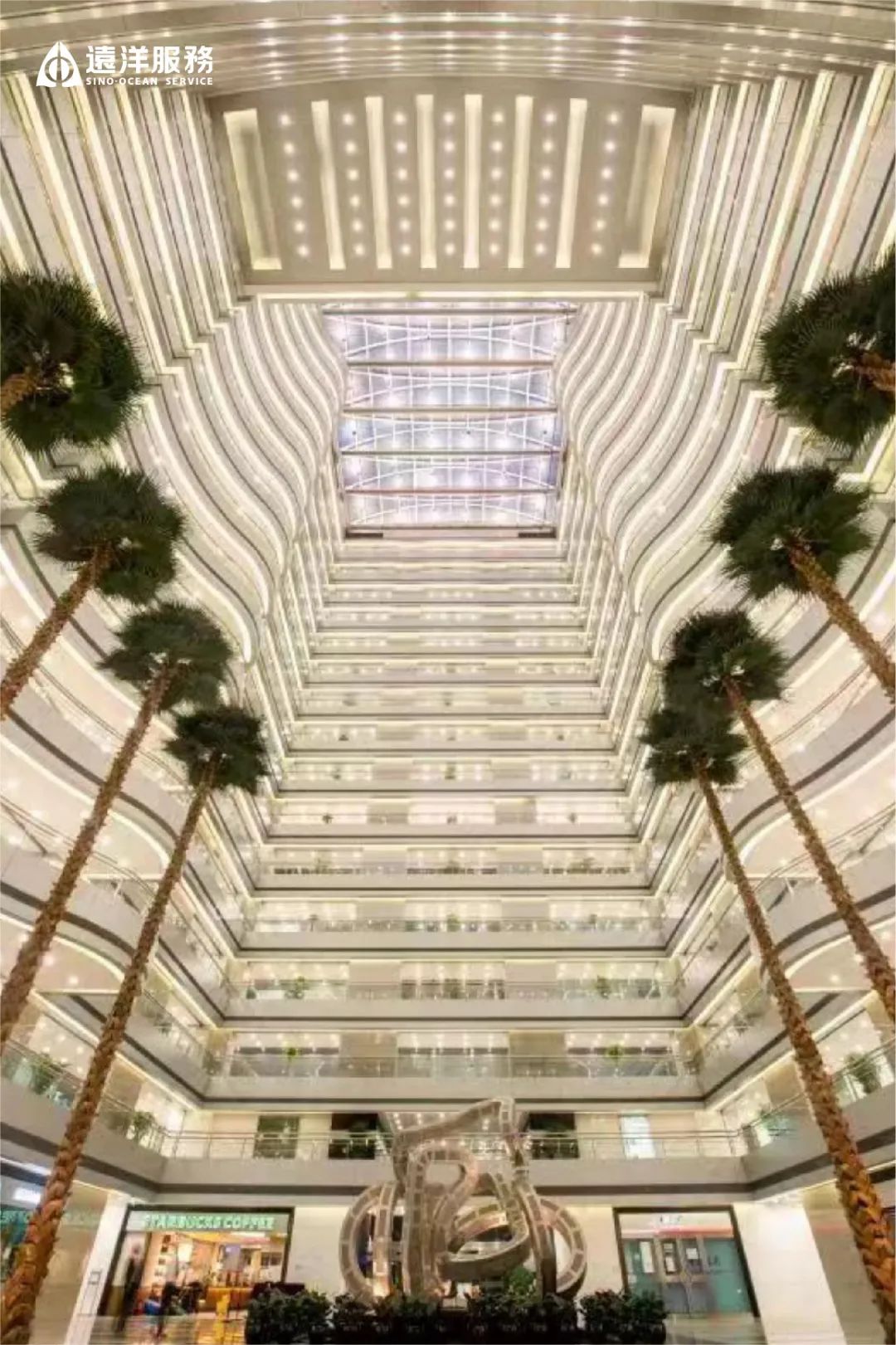 以远洋大厦为例,作为在入市时拥有亚洲第一高挑空大堂的5A级智能型写字楼,运营二十余年来,注重建筑人文气息的呵护。远洋大厦大堂中的“四海一家”水系雕塑、八棵棕榈树,都是远洋大厦标志性的人文景观。为维护好这些标志性景观,定期进行细致的清洁和维护,二十余年的坚守,让远洋大厦的文化传承如一。