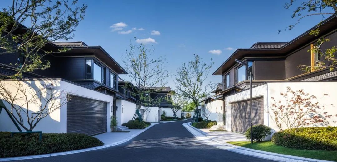 步入长乐雅颂·撷芳,一座座宋风别墅隐匿于绿树丛中。屋舍俨然,庭院深深,黛色屋顶,如同被墨线精心勾勒;鱼鳞瓦片,泛着青灰色的光泽,宛如一首低吟浅唱的诗行;檐角起翘的弧度,如同《四景山水图》中欲振翅高飞的燕尾,轻盈灵动……