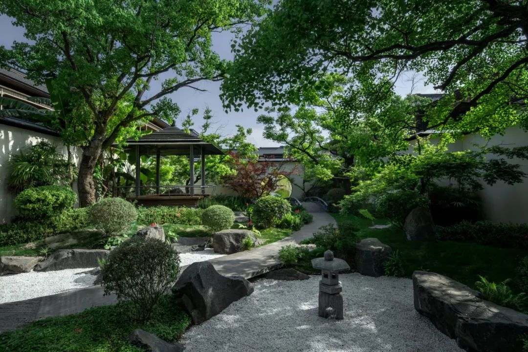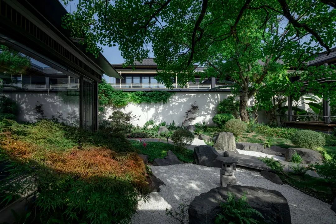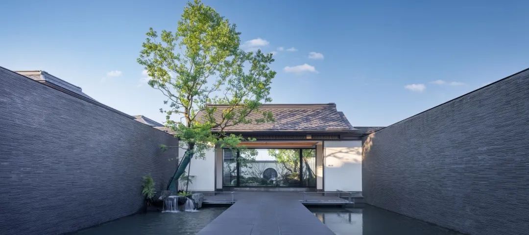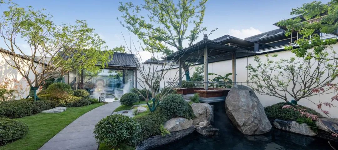 二重苑景,藏画意千重。穿过门庭,便入重云水院。水雾氤氲间,鱼沼飞梁横跨碧波,恰似宋徽宗《瑞鹤图》中仙台凌虚;园中花木采用宋代名画里的松、梅、牡丹、莲等元素,与白墙黛瓦互为映衬,步移景异,令业主如同行在刘松年的《四景山水图》之间。