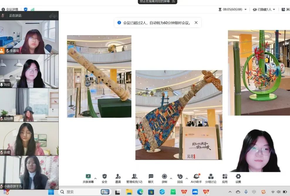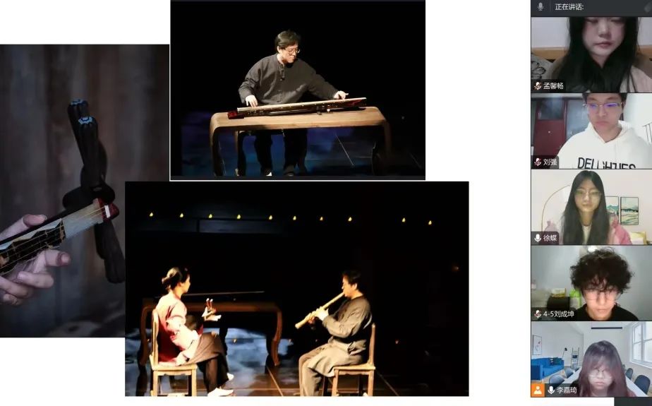 通过主讲人刘佳的讲解,同学们被南音背后的文化底蕴所吸引,了解到主要传承方式有家族传承、师徒传承、学习教育、数字化传承等多种模式。 记谱方式以“乂、工、六、思、一”五个汉字记谱,右旁加琵琶指法和撩拍号,称“工乂谱”。最后,主讲人刘佳向大家介绍了南音的传承人区均祥、苏统谋、李白燕等大师为南音的传承所做出的卓越贡献坚守热爱,令人敬佩。