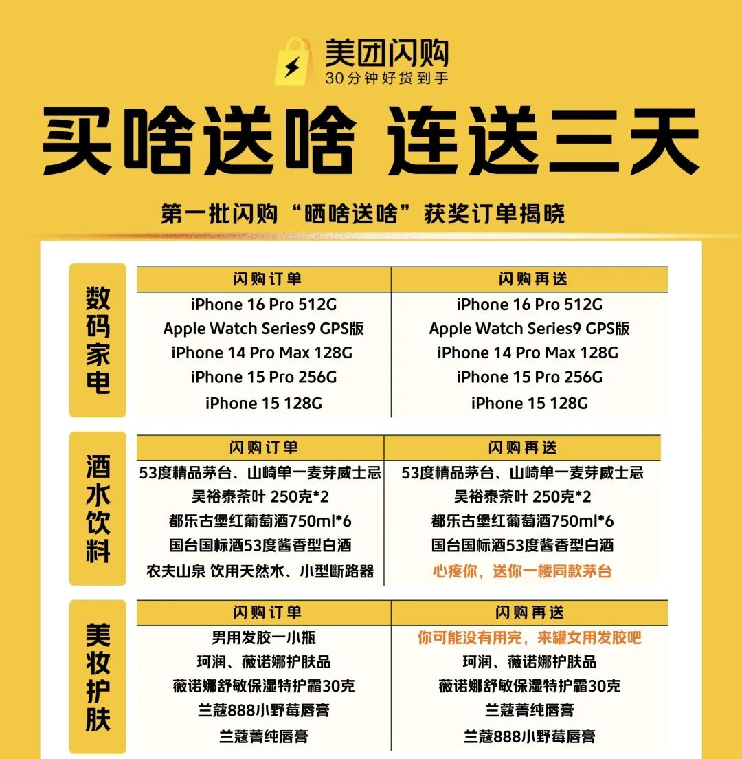 从今天开始,在原定的50个名额基础上,美团闪购再追加100个“晒啥送啥”名额!