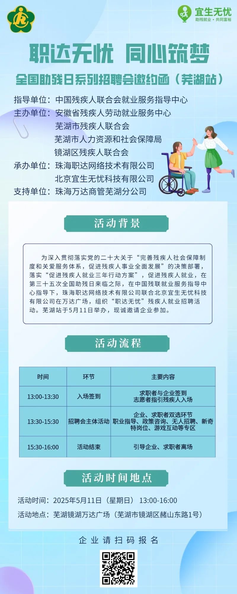 宜生动态丨全国助残日系列残疾人专场招聘会(芜湖站)“职”等你来
