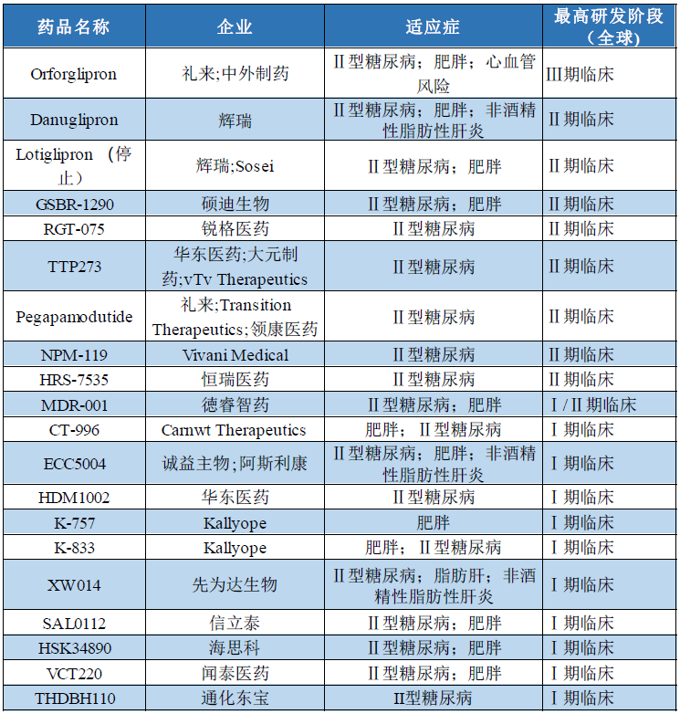 表2. 全球临床阶段多肽GLP-1药物研究进展(Ⅱ期以上)