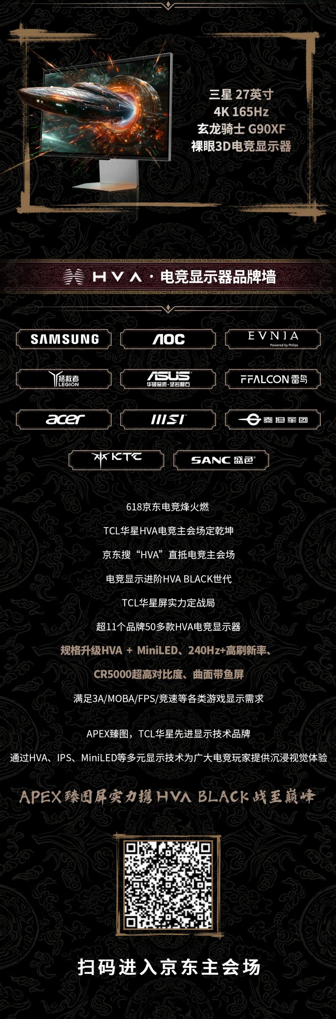 TCL华星电竞屏进阶HVA Black世代!屏实力燃战京东618