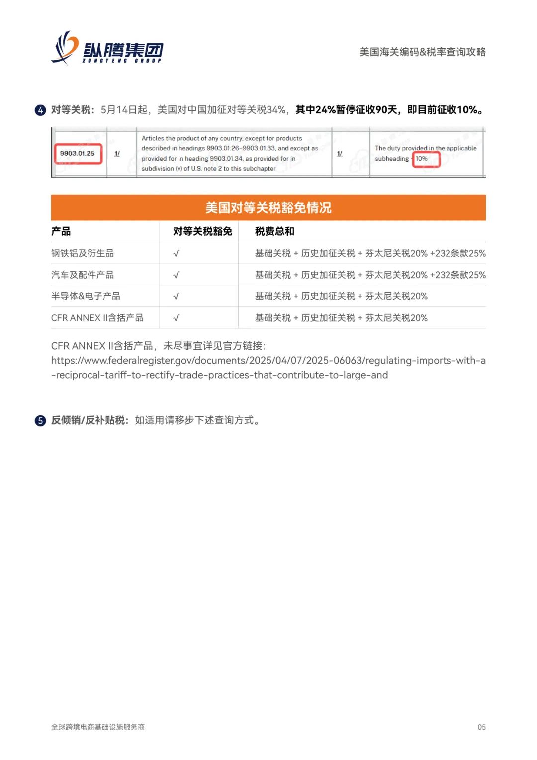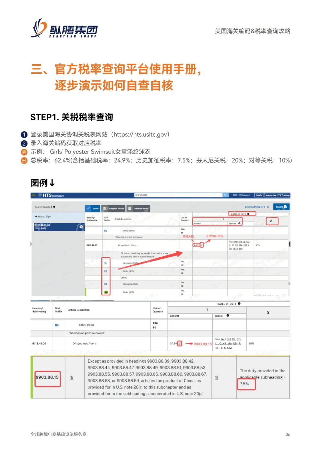 发送“攻略”到纵腾集团公众号获取PDF版本《美国海关编码&税率查询攻略》,方便您一键点击,快速进入查询页面。