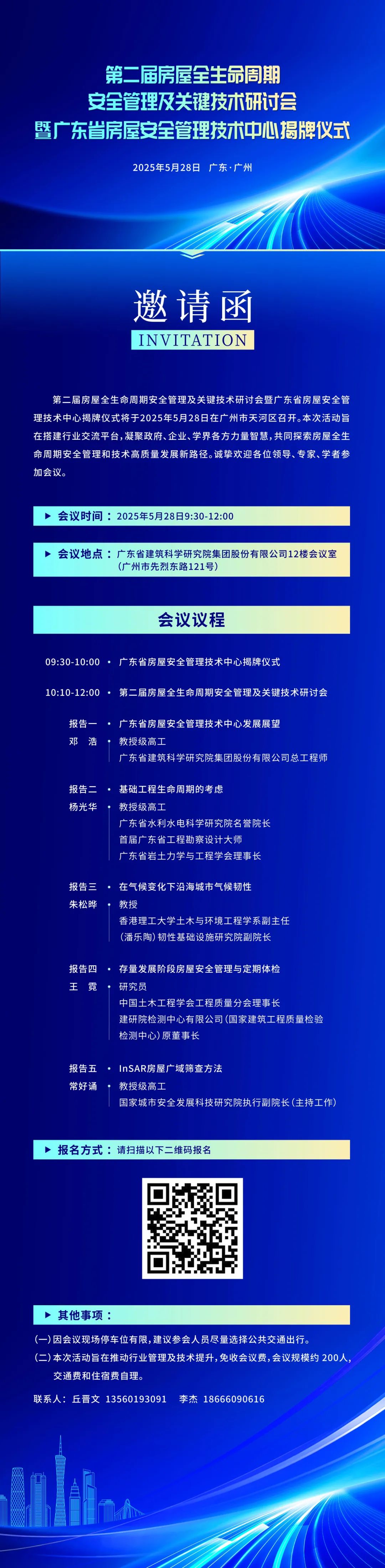 第二届房屋全生命周期安全管理及关键技术研讨会暨广东省房屋安全管理技术中心揭牌仪式将于5月28日召开!诚邀与会!